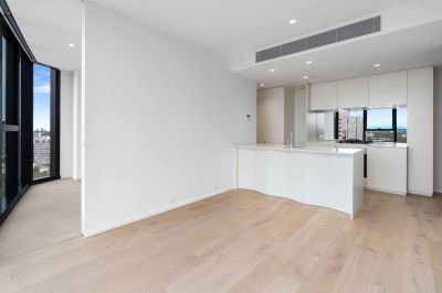 Welcome to this spacious apartment featuring a seamless open-plan living and dining area connected to a modern kitchen. The kitchen combines style with functionality, boasting a large island perfect for casual dining and entertaining, as well as premium Miele stainless steel appliances, Floorboards throughout the living spaces add warmth, while expansive windows showcase breathtaking city views and flood the space with natural light.